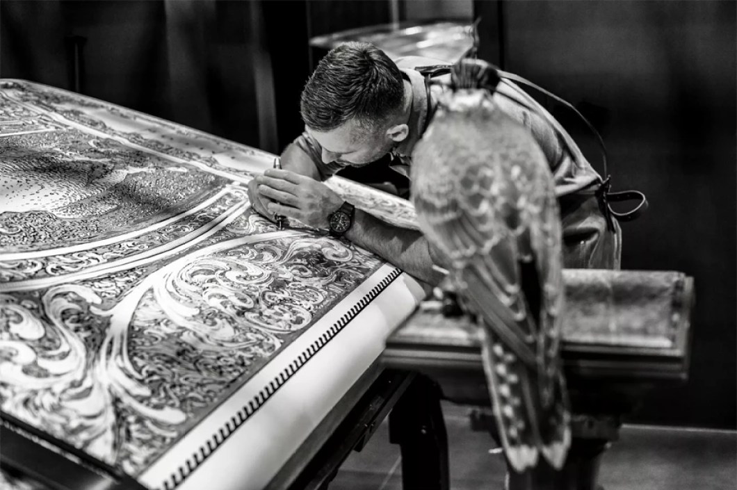 Then there’s the rifle, an artwork in its own right, featuring falcon engravings and housed in a bespoke leather case. Created by VO Falcon, this rifle complements the G-Falcon, both highlighting the elegant sport of falconry.