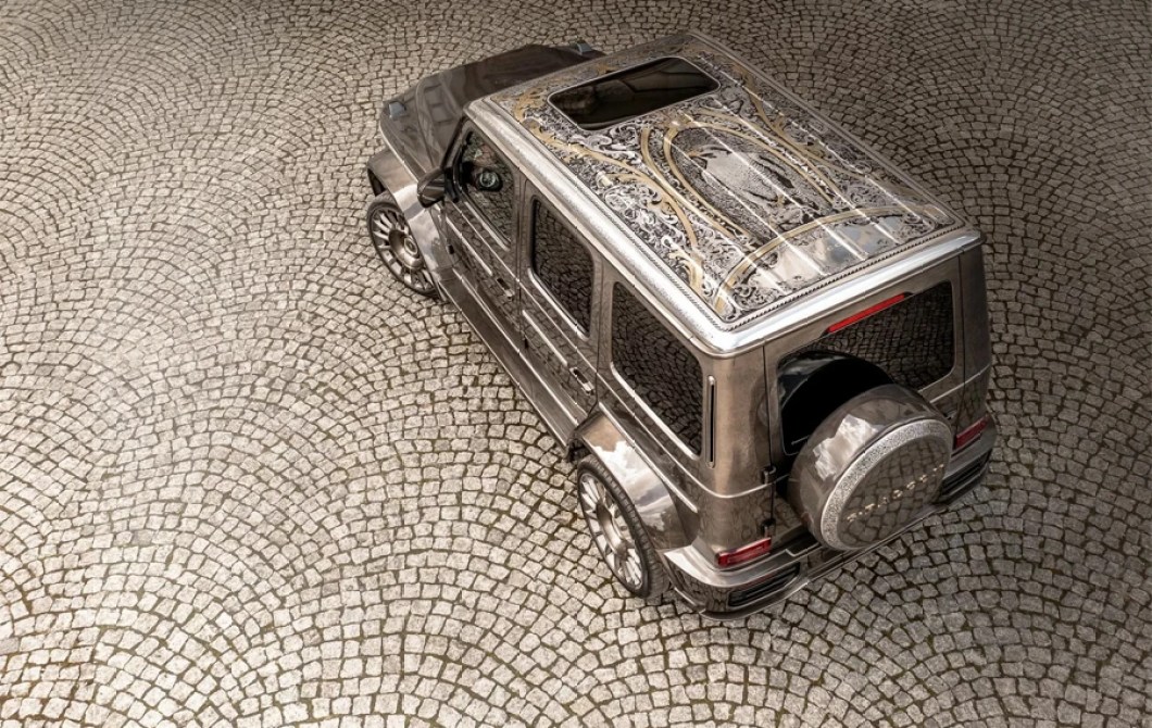 The G-Falcon is not just a car but a celebration of Arabian falconry, an art form cherished across the Middle East. Its exterior is a stunning metallic bronze, a hue that instantly commands attention and admiration. But the true marvel is on top – the entire roof features a meticulously hand-painted and engraved mural of a falcon in flight. How often do you come across a car that carries a piece of fine art on its roof?