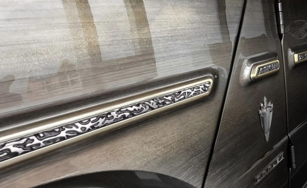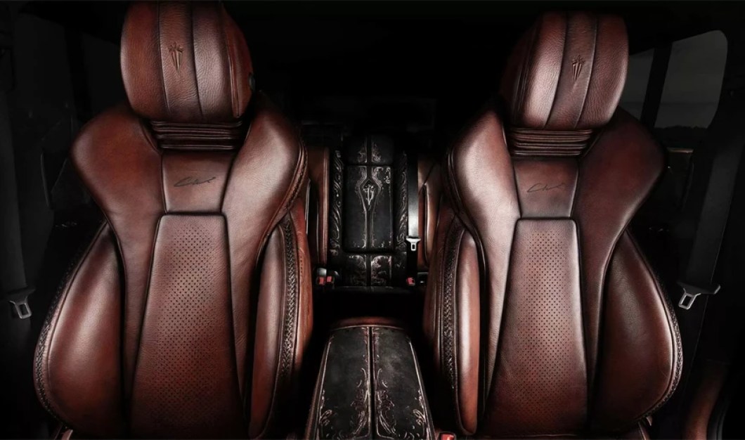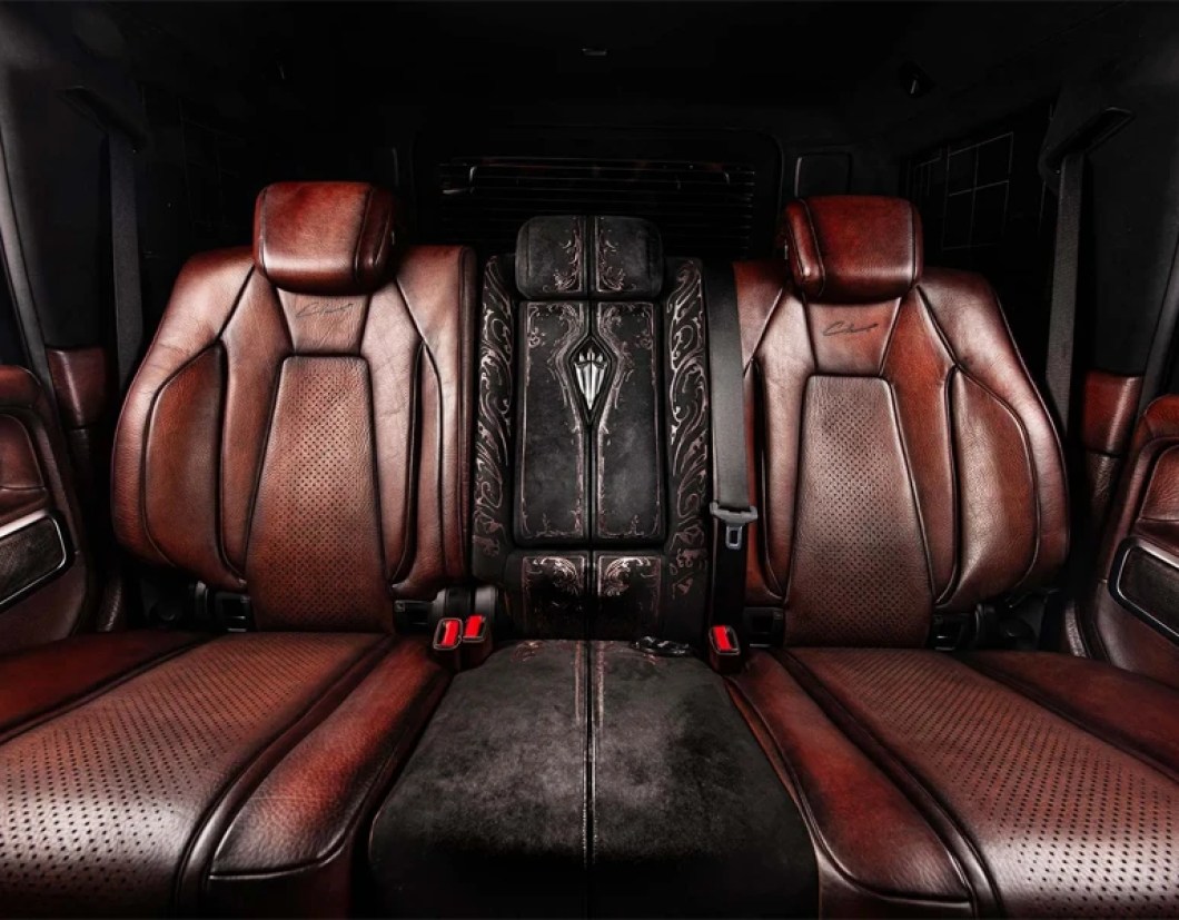 The details of the G-Falcon are equally impressive. The vehicle boasts a redesigned front fascia, flared wheel arches, and sleek rocker panels. The wheels match the body’s bronze tone, and the spare wheel cover proudly declares its identity: ‘G-Falcon.’ It’s hard not to be awed by such exquisite detailing – every element tells a story of craftsmanship and luxury.