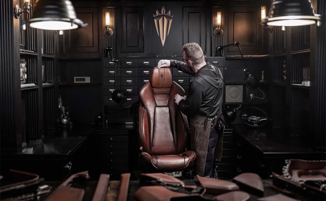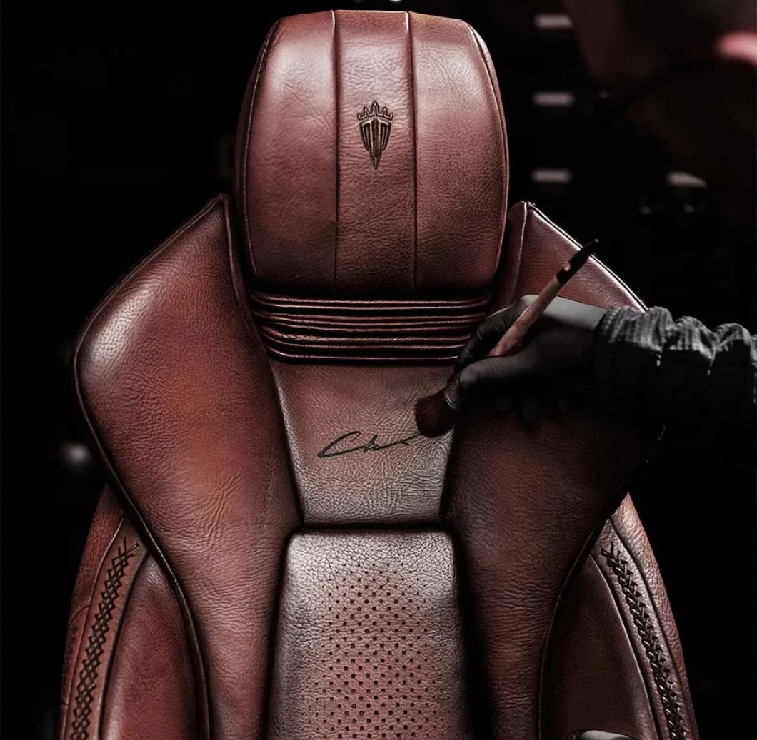 Step inside, and the interior envelops you in rich, deep red leather – a stark contrast to the bronze exterior but equally lavish. The dashboard, seats, and even the door panels are adorned with hand-stitched falcon motifs. Custom falcon-talon door locks add a touch of the wild, echoing the spirit of falconry that inspired this entire creation.